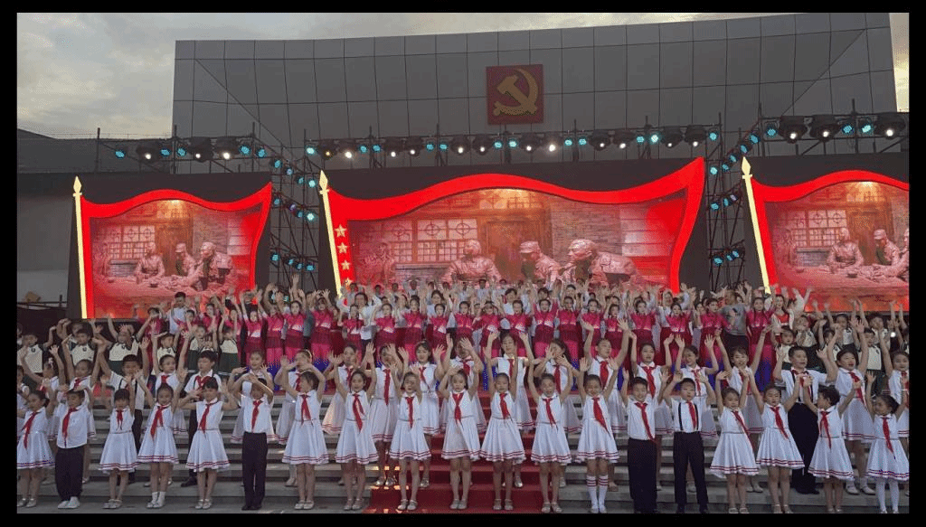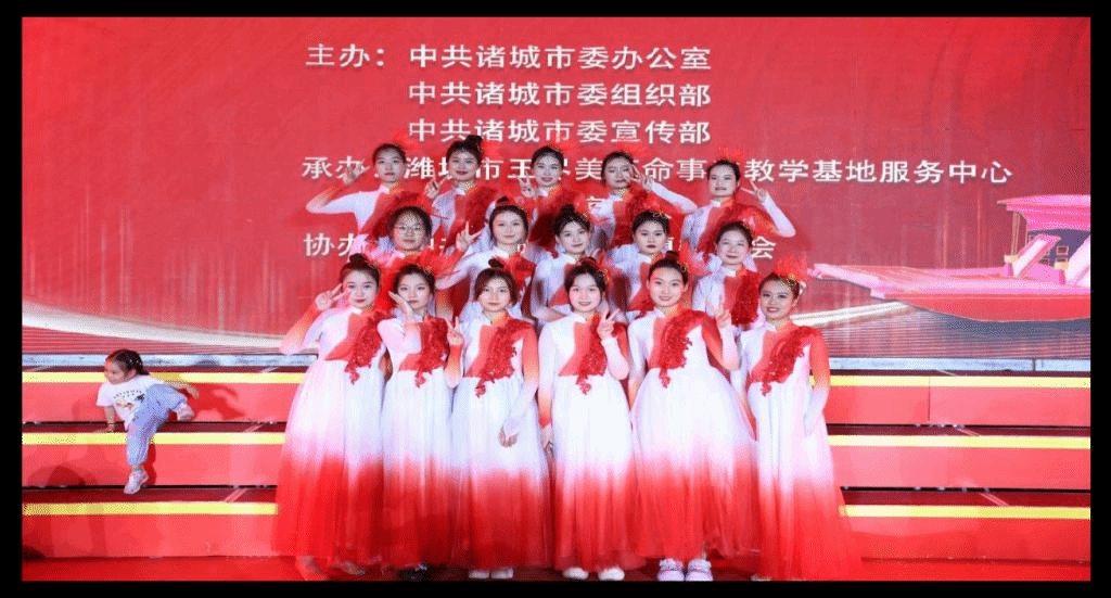 为重温革命先烈的英雄事迹,弘扬伟大建党精神,6月7日晚,在王尽美诞辰125周年之际,由中共诸城市委办公室、中共诸城市委组织部、中共诸城市委宣传部主办,王尽美革命事迹教学基地服务中心、诸城市音乐家协会承办,中共诸城市枳沟镇委员会、中共诸城市委党史研究中心协办的“尽美颂”——庆七一专场晚会,在王尽美革命事迹教学基地精彩上演。由潍坊工商职业学院幼教艺术学院参与演出的歌舞《赠友人》、歌舞《我们是“史敢当”》等节目相继上演,弘扬了伟大建党精神,讴歌新时代、唱响新征程,抒发“王尽美”家乡人民勇于追梦圆梦的信心与决心!1个多小时的晚会高潮迭起、掌声不断。整台晚会主题突出,形式多样,创意新颖,让广大观众欣赏了一场精彩、独特、难忘的文艺演出。观众纷纷表示,这场演出讴歌了我党革命先烈,为建立新中国不惜抛头颅、洒热血的崇高精神和坚定信念,激发了大家深厚的爱党爱国热情!