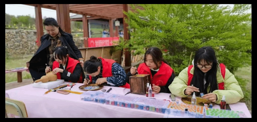 为深入贯彻落实党的二十大精神,传承弘扬中华优秀传统文化,进一步建立健全和完善非物质文化遗产保护传承工作,4月22日上午,诸城市“黄河大集•四季非遗”展暨“东坡试茶”品鉴会在桃林镇诸城绿茶文化广场隆重举行,潍坊工商职业学院作为承办单位之一,协同幼教艺术学院共同推出2个精品原创节目及大量手工掐丝珐琅作品参展。现场活动中,张芙慧老师展示了传统工艺品的制作过程,让更多人零距离接触掐丝珐琅工艺技术,同时看传承人绘制技艺,感受了多彩非遗带来的美好生活;作为文化的传播者,我院杨倩倩老师现场演唱了原创作品《我的故乡在远方》,给大家带来丰富多彩的体验活动,也吸引了众多观众前来打卡,再现艺术的蓬勃青春;由我院任继刚老师带领的星辰合唱团用群众喜闻乐见的形式宣传普及非遗知识,奏响了中华传统文化的时代之音,让优秀传统技艺焕发出生机与活力。