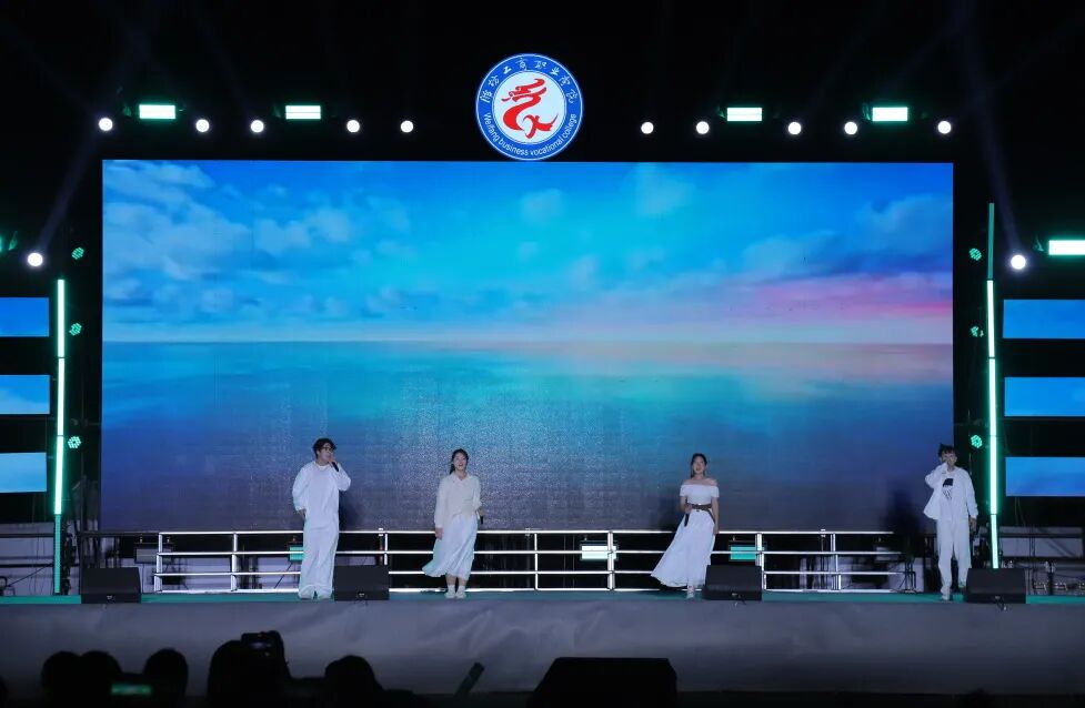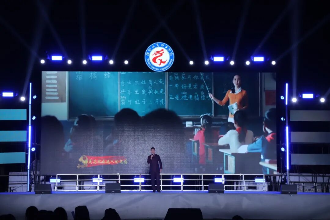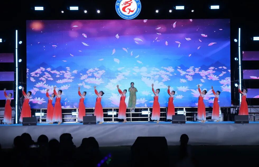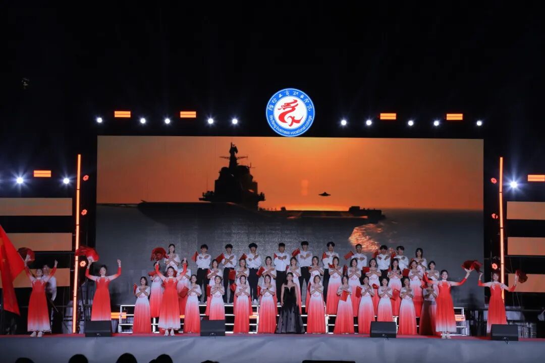 开场舞《盛世欢歌》以欢快舞姿率先登场,为晚会拉开活力序幕;歌舞《奔跑的青春》以动感节拍点燃全场热情;李玉蕾老师在《老师我想你》中倾注深情,致敬师者初心;空乘专业学子的《向阳而飞》将礼仪化为舞姿,诉说对蓝天的向往;《唱支歌儿给党听》由师生携手演绎,唱响感恩与担当。