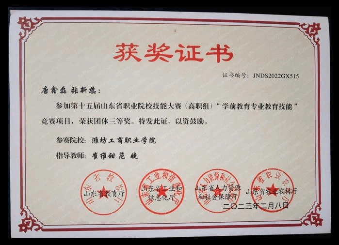 1.以赛促教,学生参加山东省职业院校技能大赛获三等奖