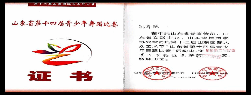 1.舞蹈作品《八女投江》获山东省第十四届青少年舞蹈比赛群舞类三等奖