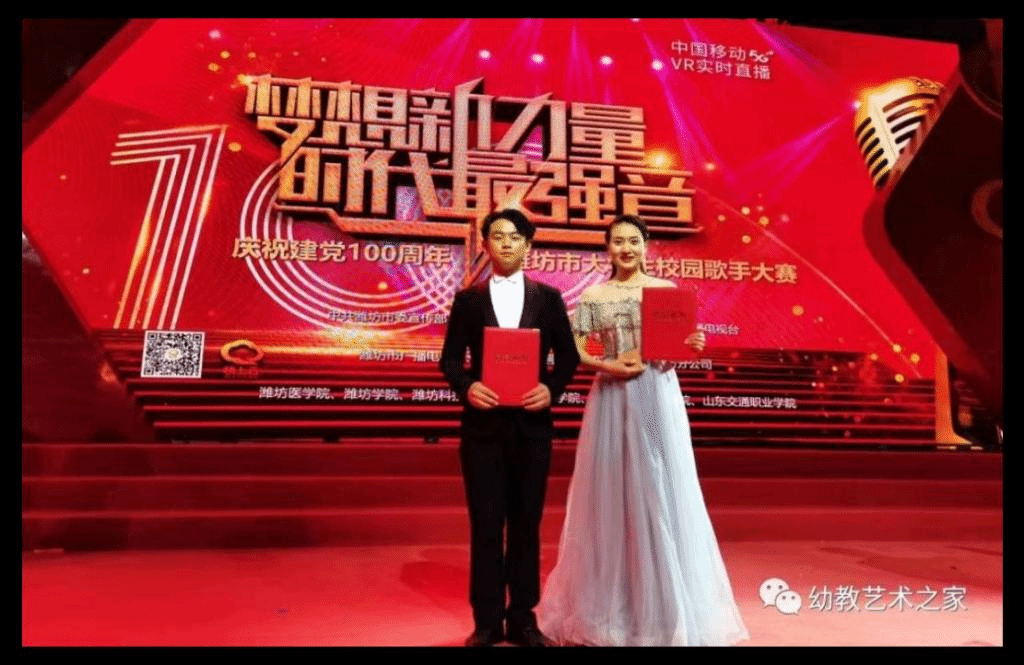 3“梦想新力量 时代最强音”庆祝建党100周年潍坊市大学生校园歌手大赛中我校学生韩嘉琪以一首《美丽家园》荣获第一名,龙宗斌一首《向往》获得第十一名。