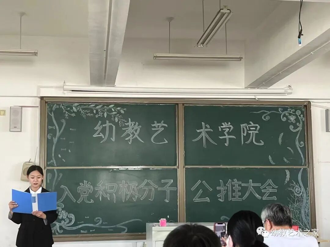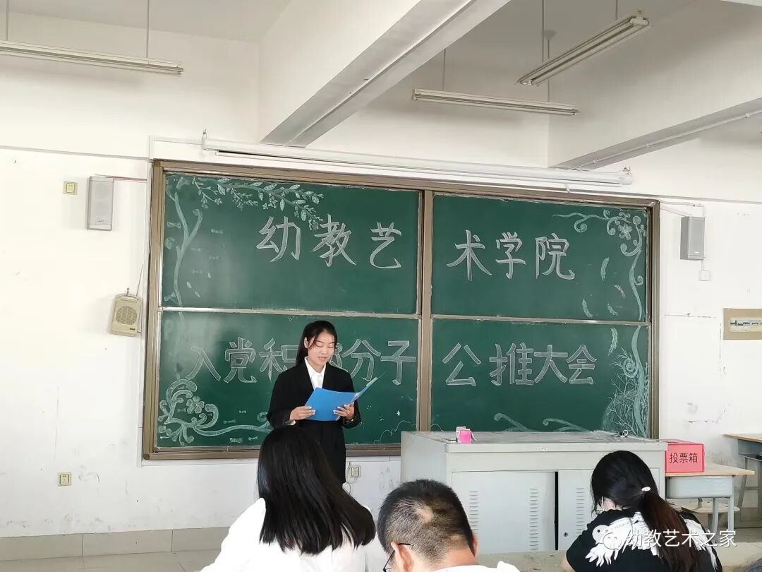 为了向党组织输送真正有文化、有能力、思想政治素质好的优秀青年,幼教艺术学院于2022年9月8日上午在A座尚智楼323合堂召开了入党积极分子公推大会。根据疫情防控工作要求,本次积极分子公推大会采用线上、线下相结合的方式。本次活动由幼教艺术学院党支部书记杨倩倩主持,参加本次公推会议的有学校党委委员杨永以及幼教艺术学院全体党员和群众代表。