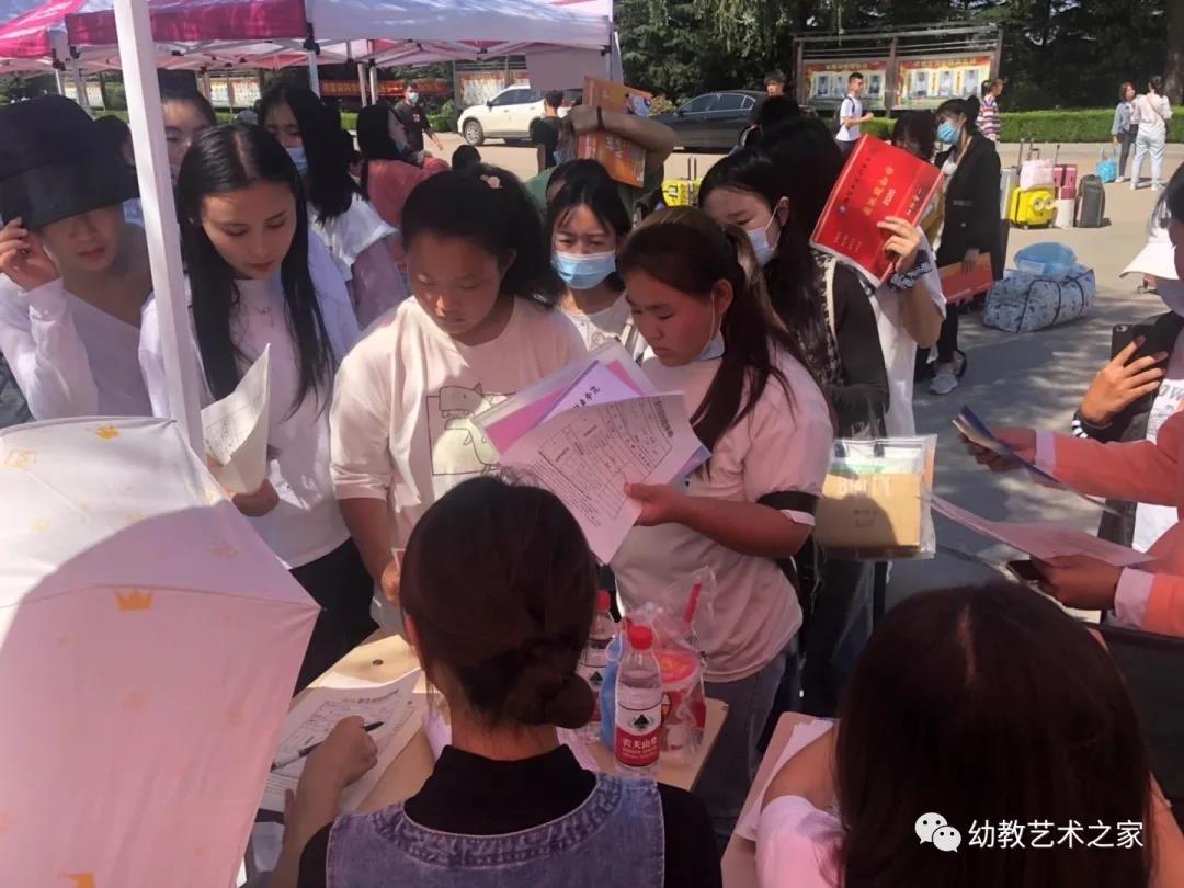 2020级新生在学长学姐的指引下来到报到处,幼教艺术学院的志愿者为新生讲解入学手续办理细节以及安全须知。引导他们查看分班情况、宿舍分布,并指引新生到各自辅导员处登记相关信息。