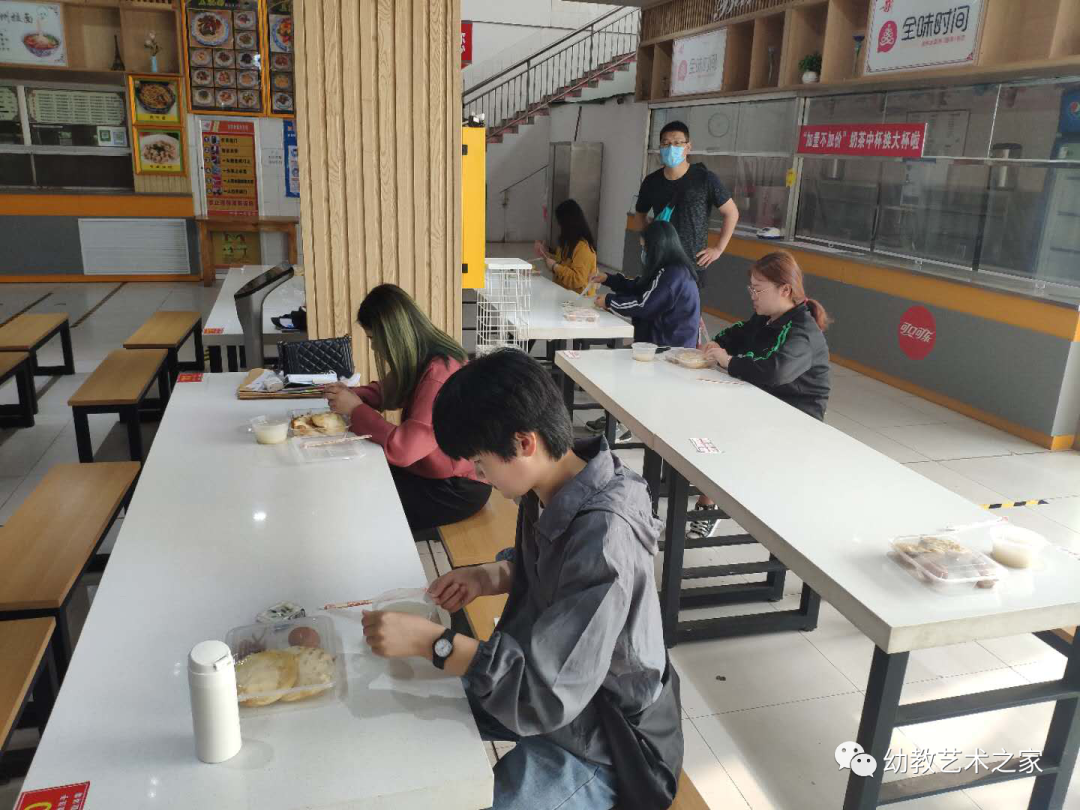 为保证就餐安全,就餐前学生们统一集合保持一定间距,由值班老师带领有序进入餐厅的固定座位,值班老师签字后进行分餐。