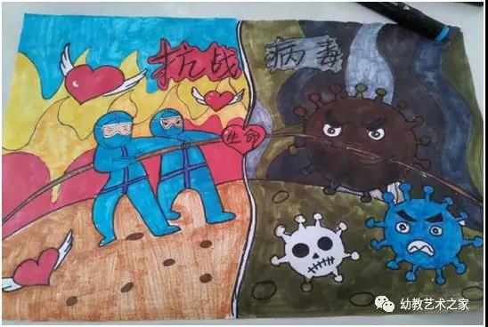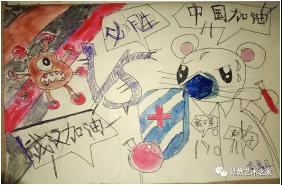 另外,部分同学用绘画等作品表达了对抗击疫情的关心: