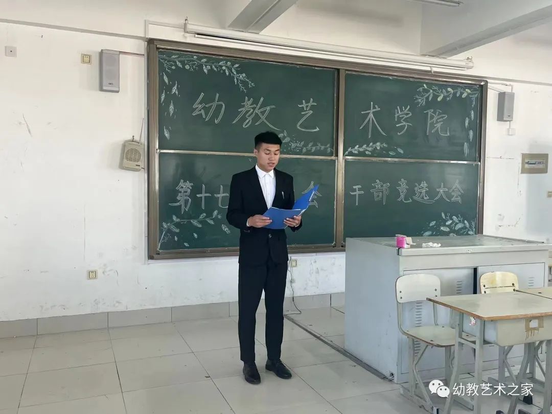 为进一步加强学生干部队伍建设,提高学生干部的工作能力,更好的服务同学、服务学院,幼教艺术学院于2022年9月19日A楼323合堂召开第十七届学生会换届竞选。出席此次会议的有幼教艺术学院党支部书记杨倩倩、党支部副书记苏茂刚、第十七届代理主席团成员、2022级大一新生班长及团支书。本次大会由苏书记主持。