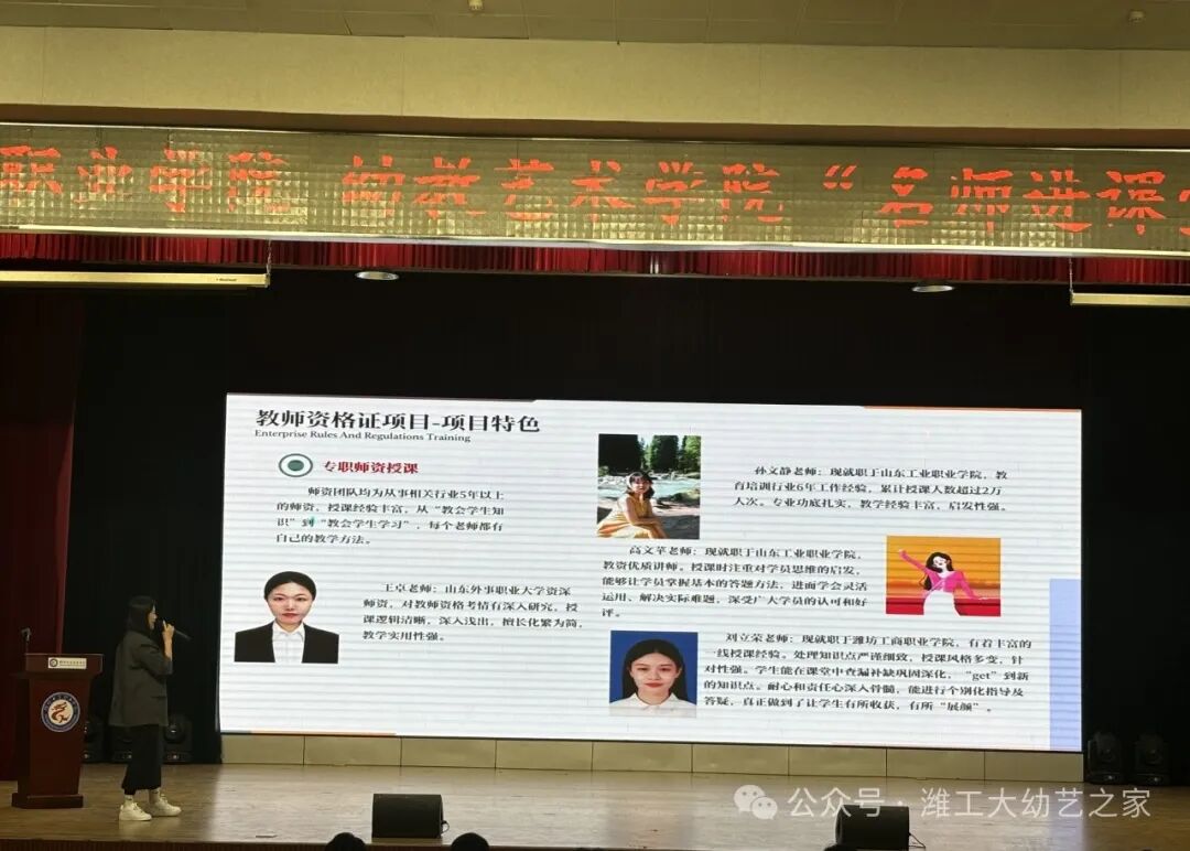 为进一步发挥名师示范引领辐射作用,加强幼教人才培养质量,提升专业技能及职业经验,搭建“园校”合作交流平台,3月19日下午,高级儿童心理健康发展指导师,山东省优秀幼儿园园长刘欢老师、普照教育教资项目负责人肖姗姗老师,受邀莅临我校,在第一报告厅展开以“用爱点亮未来”为主题的名师进课堂园长经验交流会。我院领导班子、任课教师,24级全体学生参与本次活动,冯玉香院长开场致词。