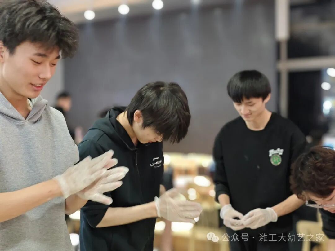 活动伊始,同学们分工合作,有人和面,有人擀皮,有人包馅,忙得不亦乐乎。现场欢声笑语不断,大家在欢聚一堂的氛围中,亲自动手体验了包饺子的乐趣。不少同学手法生疏,大家相互学习,一个个形状各异的饺子逐渐成型,饱含着同学们的喜悦和心意。