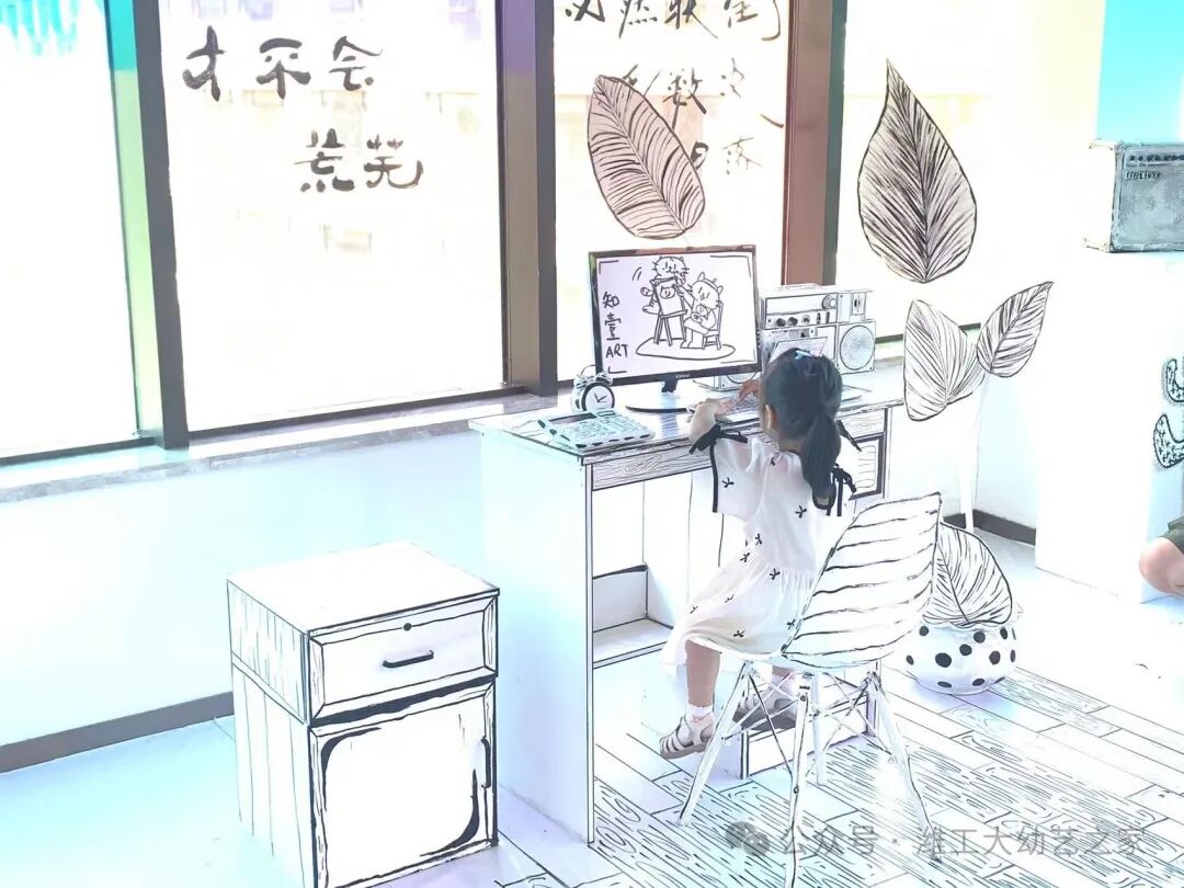 在志愿服务队的引导下,小朋友们依次来到三楼“梦中之境”画展。画展共分为五个展区,每个展区都美轮美奂,吸引着小朋友驻足围观。