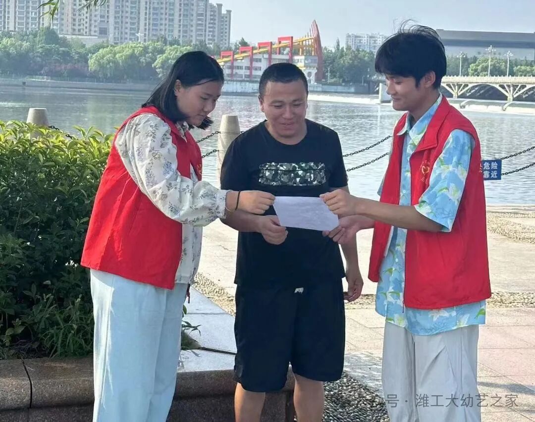 8月3日,幼教艺术学院党支部书记杨倩倩,党支部副书记、团总支部书记苏茂刚,带领“星光三下乡”志愿服务队共同前往诸城市潍河公园,开展“推普助力乡村振兴,中华文化惠万家”的宣传。