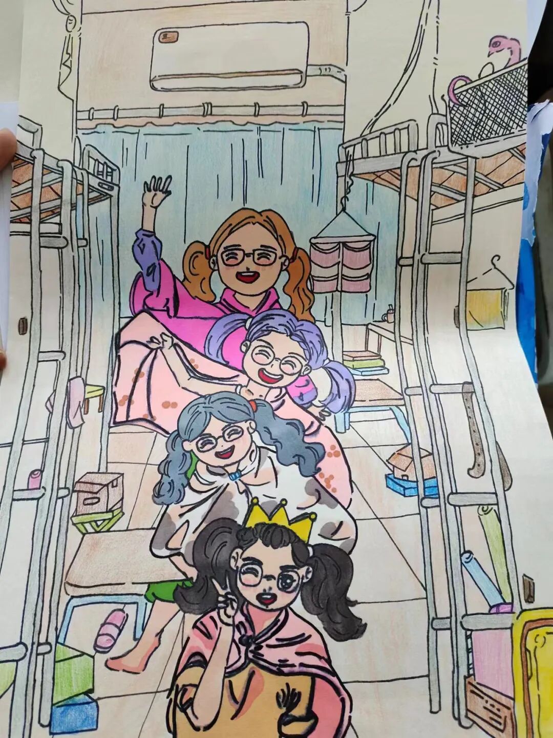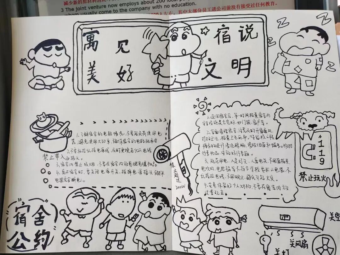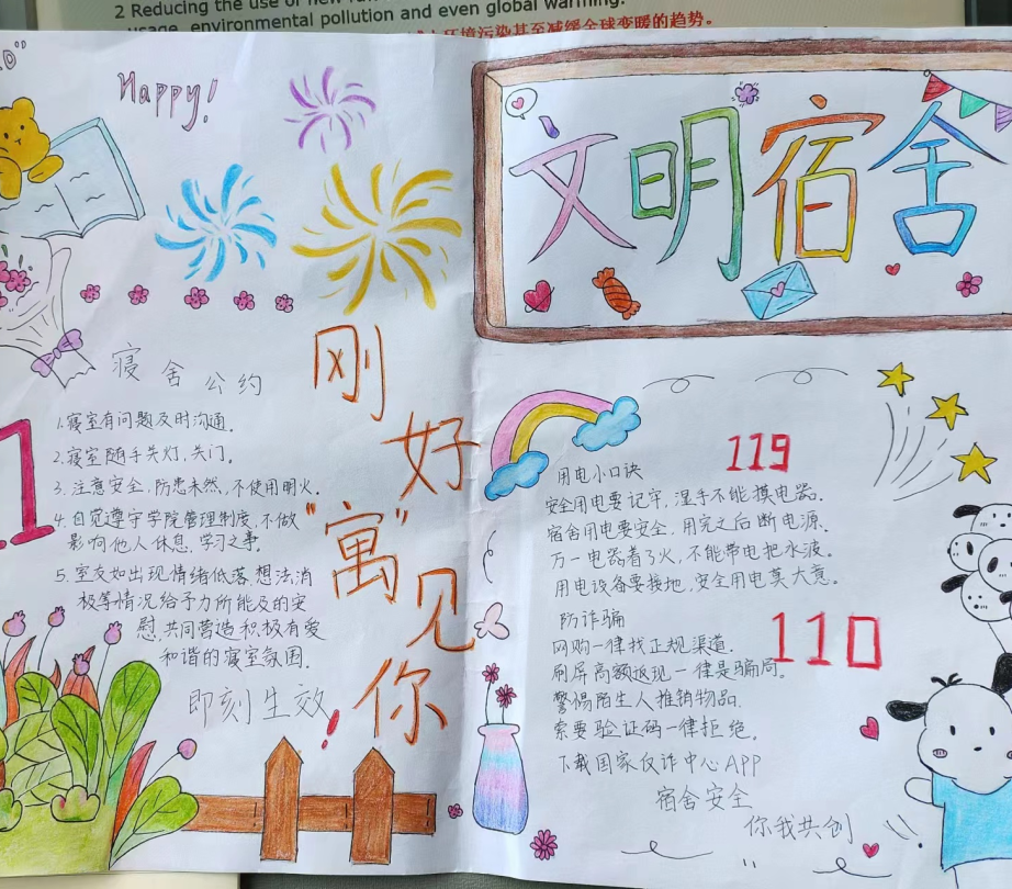 同学们用他们的想法,绘制出了一幅幅主题鲜明、构思巧妙、色彩斑斓的宿舍生活图景,展现出了同学们宿舍生活的和谐与美好。