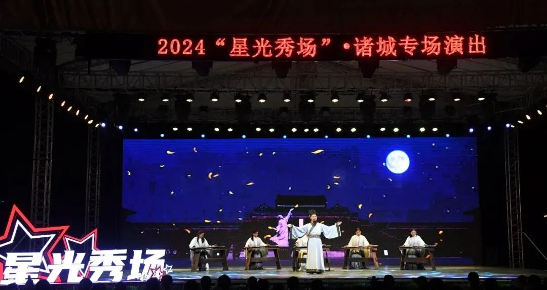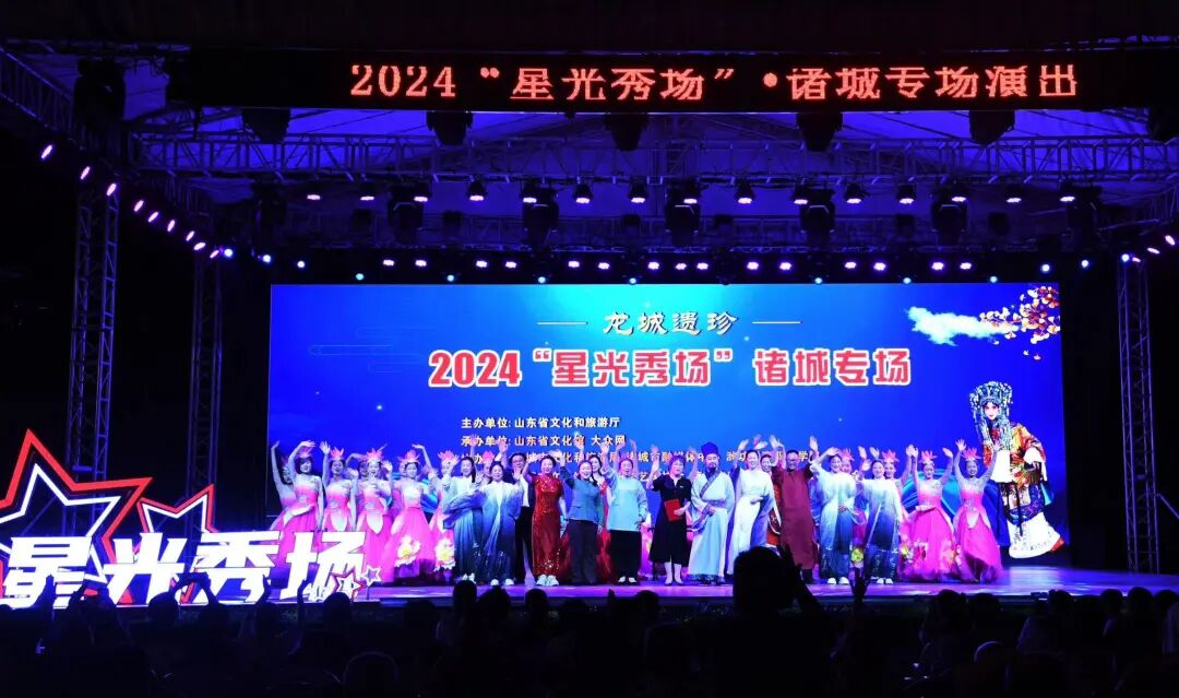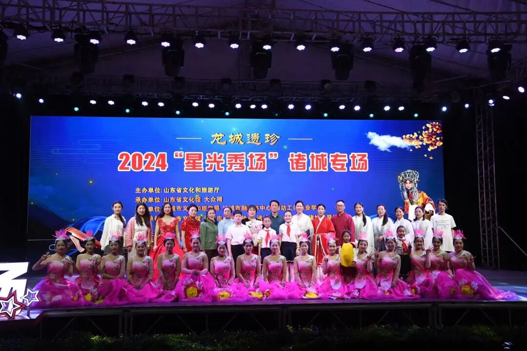 传承非遗文化是保护中华文明的重要举措,它承载着中华民族的历史记忆、地域文化和民族精神 。"星光秀场”是山东省群众文化活动优秀品牌,不仅是对非遗文化的传承、创新,同时推动了经济发展和文化交流互鉴。是山东省文化和旅游厅主办,山东省文化馆、大众网联合承办的专题非遗活动。为充分展示诸城市的文艺发展成果,由市文化和旅游局、市融媒体中心、潍坊工商职业学院统筹,市文化馆实施,组织“龙城遗珍”诸城专场参加演出。