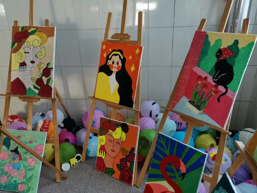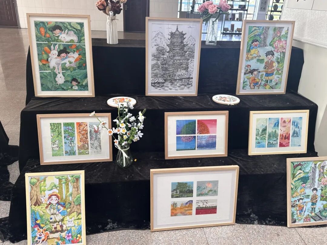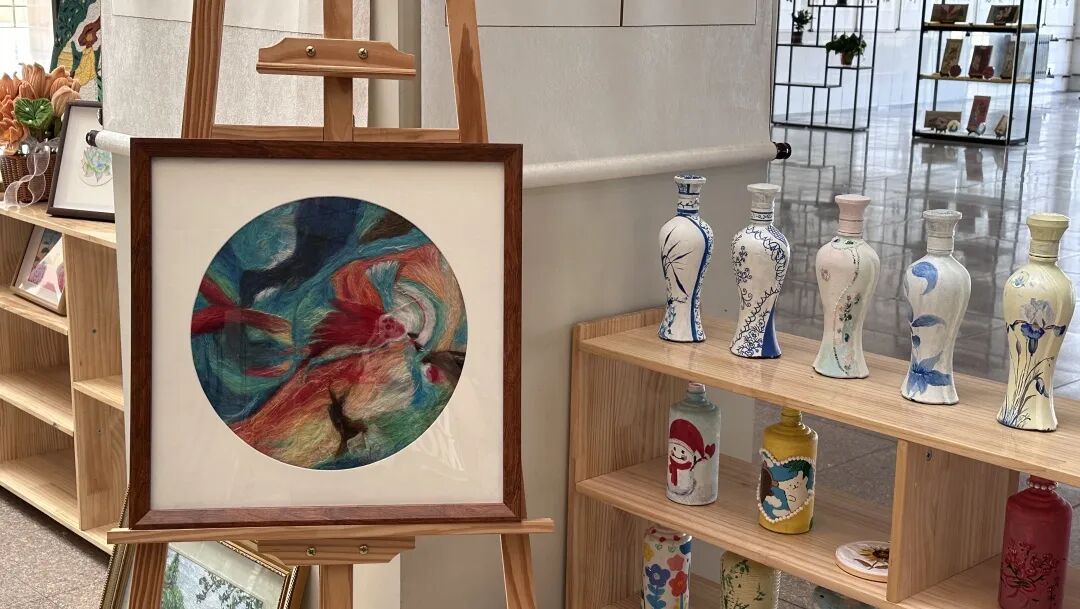 在图书信息楼一楼大厅进行的美术手工作品展,涉及到幼教艺术学院学生创作的百余幅美术作品,涵盖了刮画、刻纸、布艺、石头画、掐丝珐琅和综合材料制作等多种类型。在布展老师、学生们的集思广益、创作配合下,展品形式多样,做工精巧,引得在场师生驻足观赏,纷纷合影留念。
