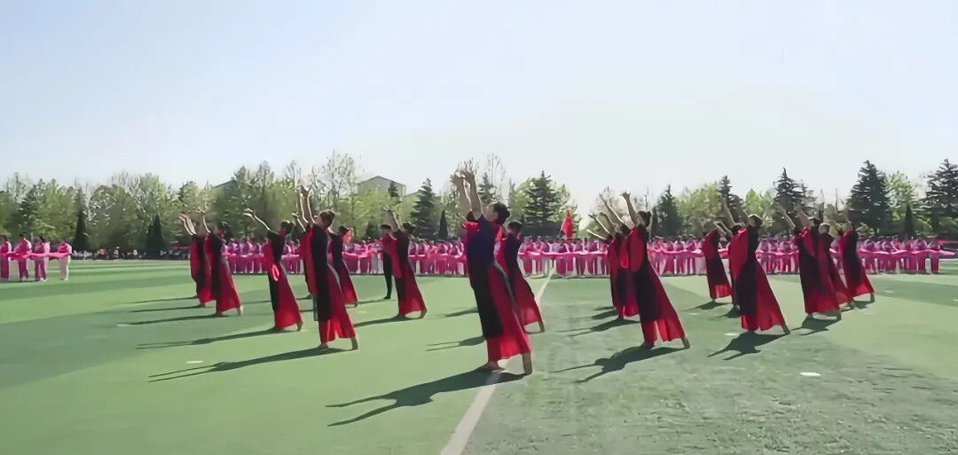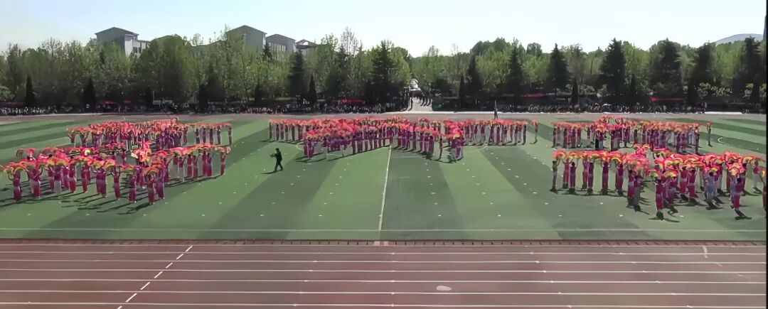 踏着春日的气息,迈着轻盈的脚步,伴着校运动会四射的光芒,幼教艺术学院340余名学子如海浪般涌入操场,并形成了一个大型舞蹈方阵。伴随着音乐《党旗飘扬的方向》的响起,整个表演方阵迅速变成一个长方形,随着音乐的变化,整个方队的造型也在变换,整个表演动作整齐,富有气势。赢得了现场所有观众的一致赞叹。