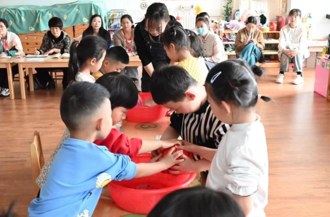 为贯彻落实《3-6岁儿童学习与发展指南》精神,践行《幼儿园保育教育质量评估指南》思想,促进保育教育高质量提升,2024年4月19日上午,由诸城市教体局综合教育二科组织的“发现儿童”项目视导活动在诸城市实验幼儿园繁华新城分园开展,在潍坊工商职业学院幼教艺术学院冯玉香院长的带领下,党支部书记杨倩倩、学前教研室主任崔维甜老师及骨干教师进行了观摩学习。