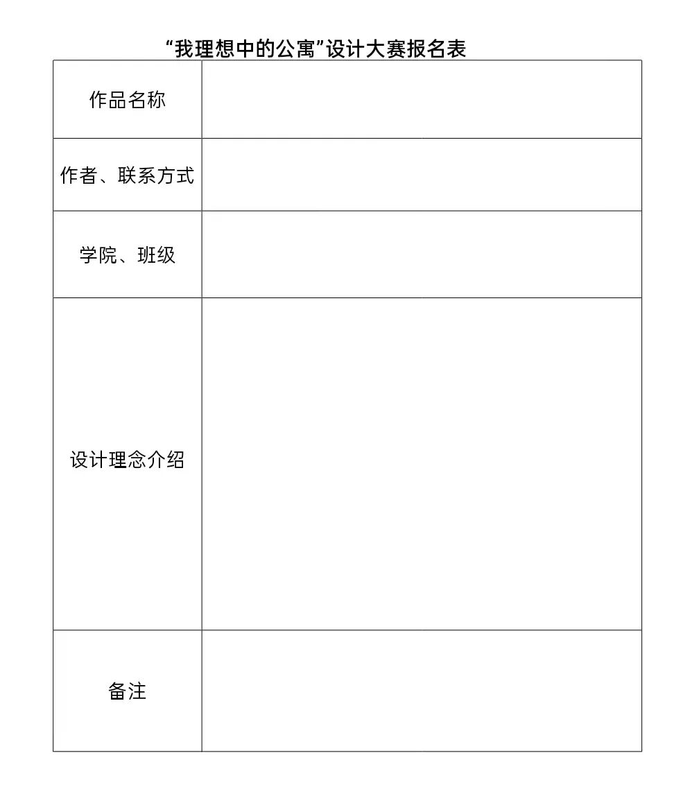 (1)公寓设计大赛可选择以整个社区、一栋公寓楼、一层楼或一间宿舍为单位,畅想你心目中学生公寓的样子。设计内容积极向上、健康活泼,软硬件设施布局合理、功能新颖,能更好地满足新时代大学生学习生活的需求。设计作品以文字描述为主,可附设计效果图或动画等。