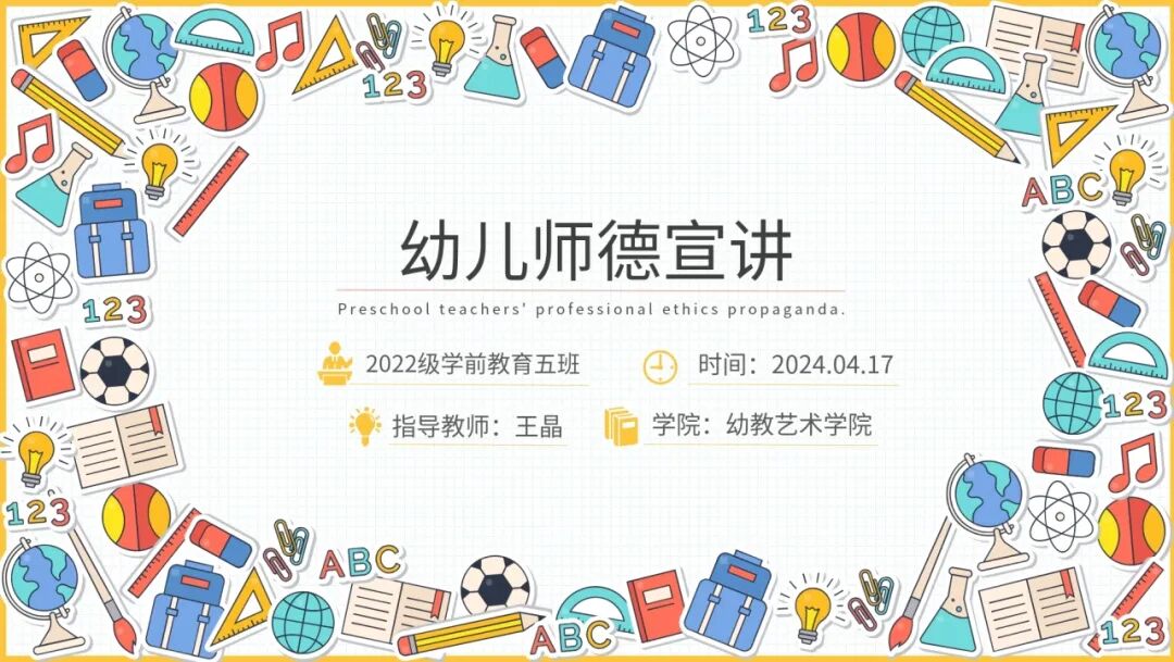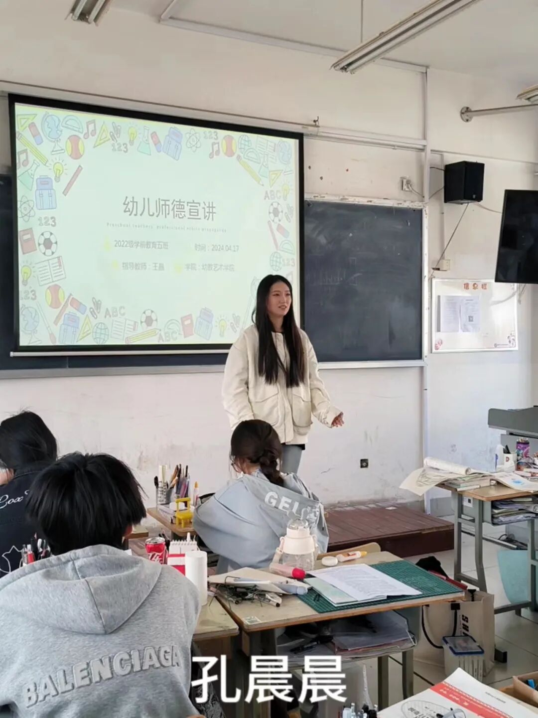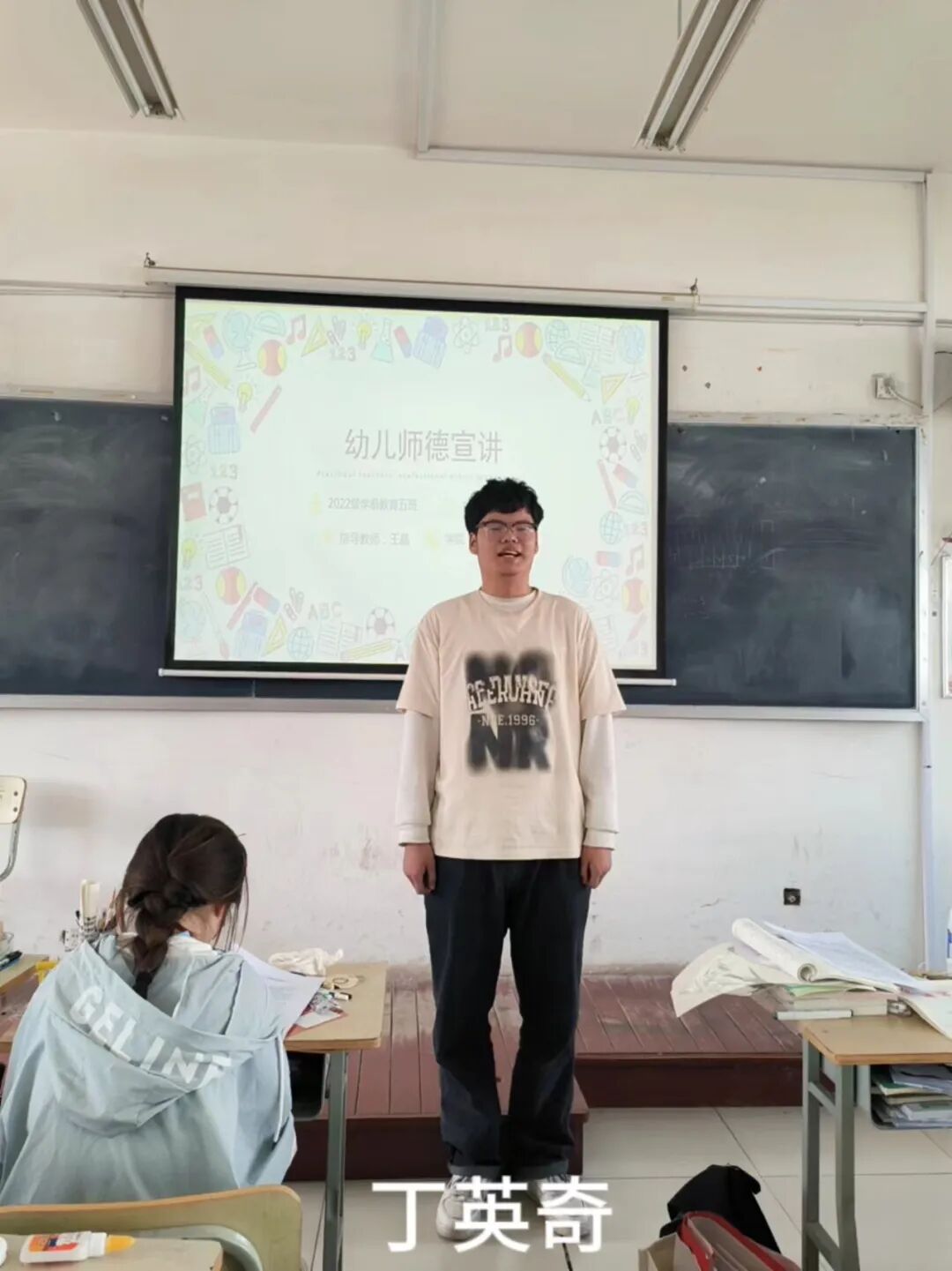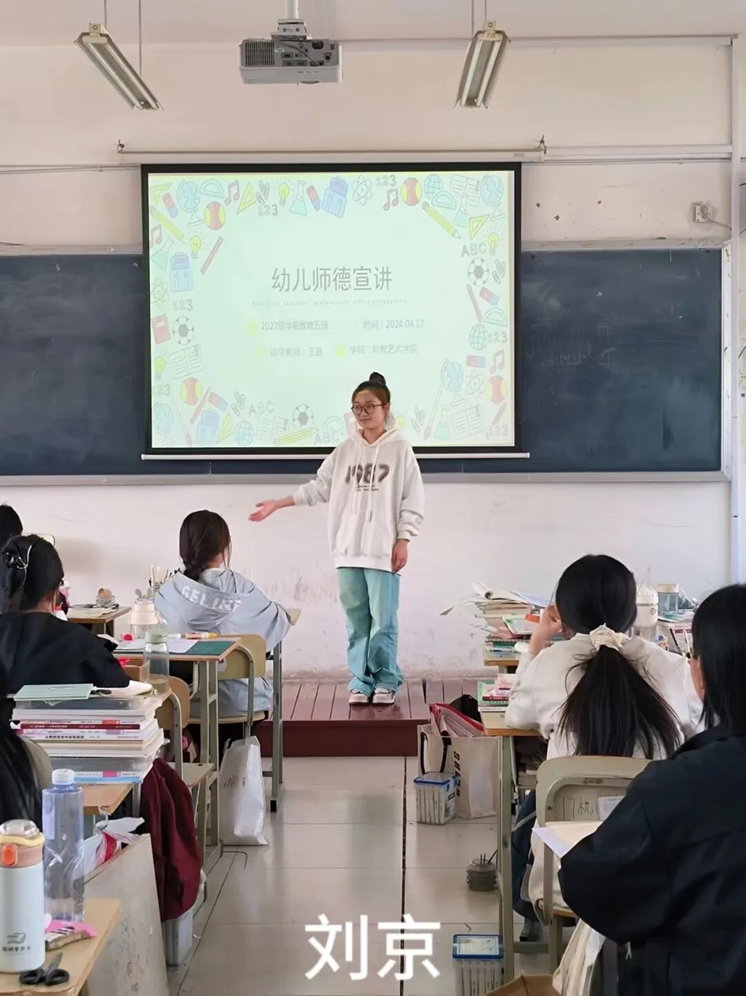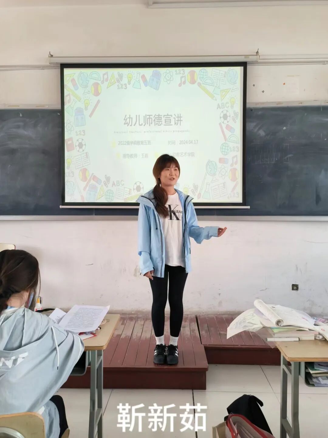 为推动学生们教师职业道德知识的掌握,完善道德品行,升华道德境界,更好地完成实习任务,4月17日上午,2022级学前教育5班开展了“树师德,扬师风”幼儿师德宣讲会。