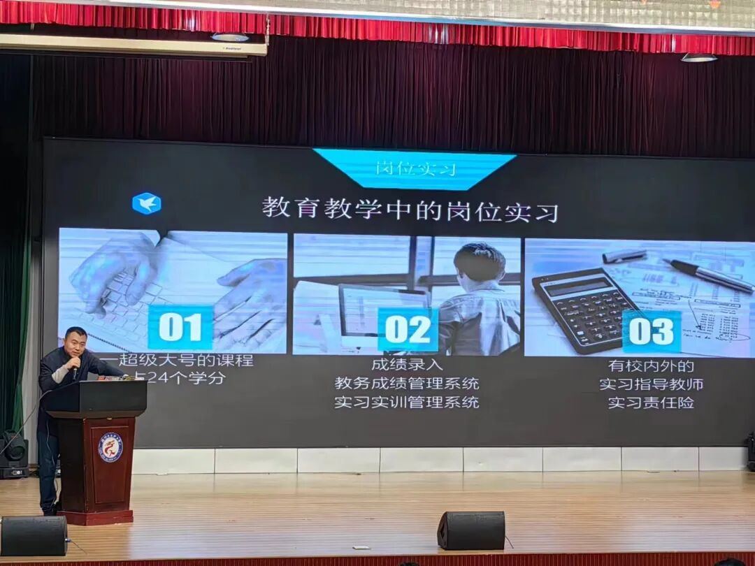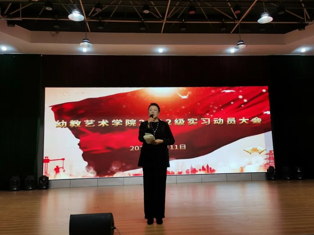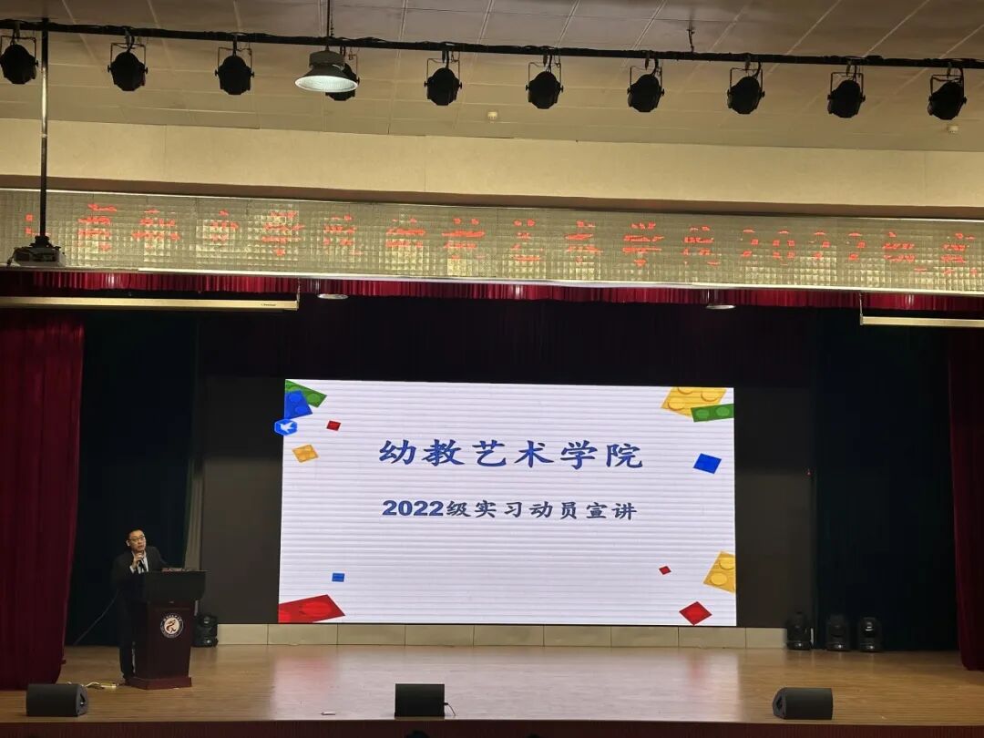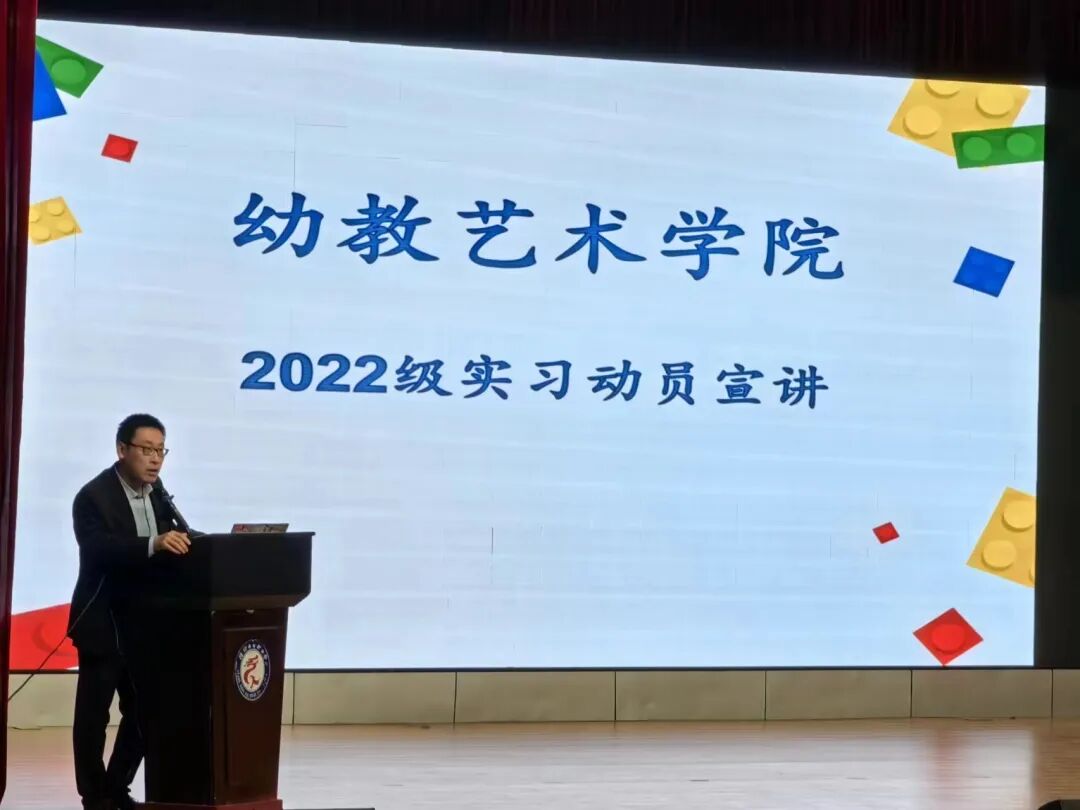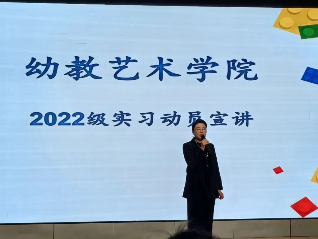为进一步落实人才培养方案,确保2022级学生实习工作有序开展,幼教艺术学院于4月11日上午8:30在第一报告厅召开了学生岗位实习动员宣讲大会,参与本次会议的人员有合作办学处处长侯国强、实习实训处副处长王超、实习指导老师、幼教艺术学院班子成员、22级全体辅导员以及学生。