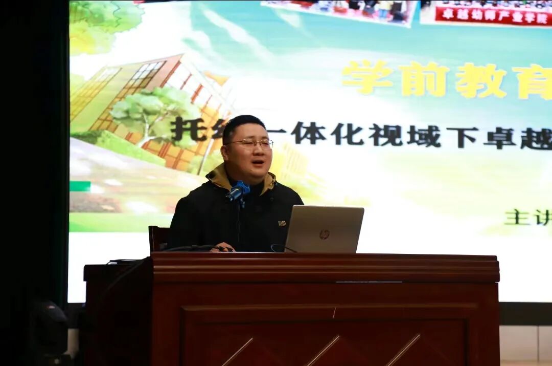为了进一步加强我院学生对专业的了解,让学生能够对自我职业有清晰的规划,使学生更好地了解幼教发展趋势和专业发展前景所具备的能力,同时为提高学生的学习兴趣,我院特联合山东普照教育邀请济南幼儿师范高等专科学校幼儿产业学院教学主任曹鹏主任于2024年3月20日下午在第一报告厅开展以“学前教育发展趋势-托幼一体化视域下卓越教师职业能力的唤醒与养成”为主题的讲座。