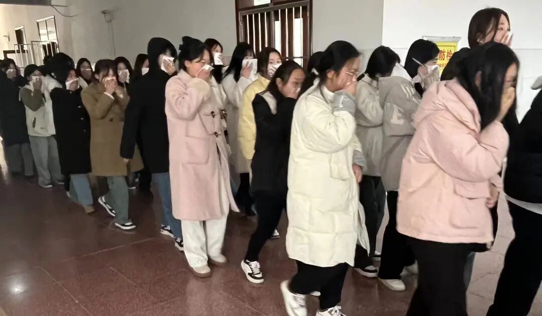 15点40分,演练警报准时响起。同学们以最快速度、紧张有序地撤离教学楼,按照既定的疏散路线前往指定集结点。
