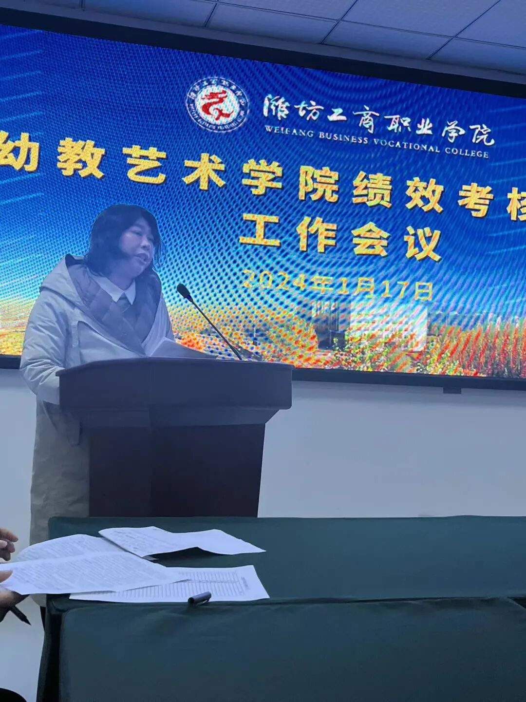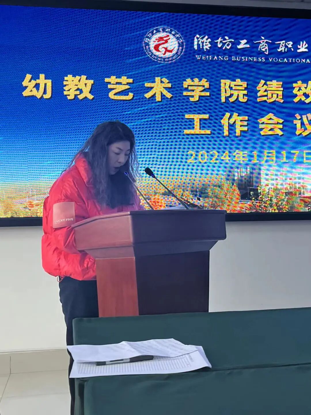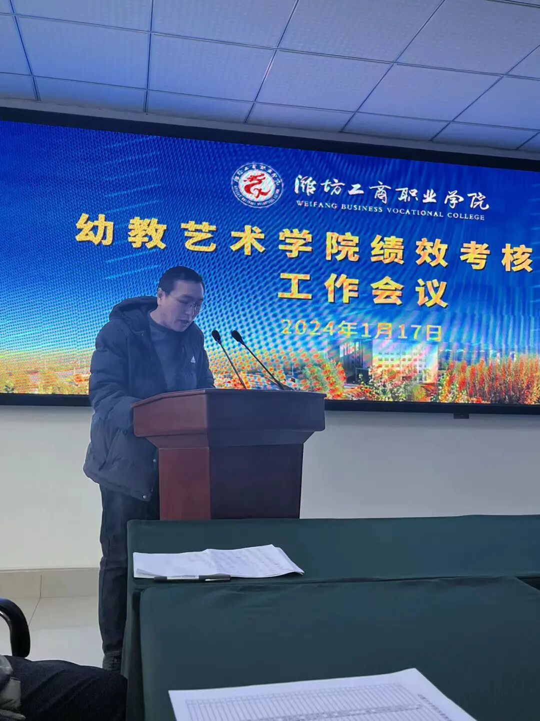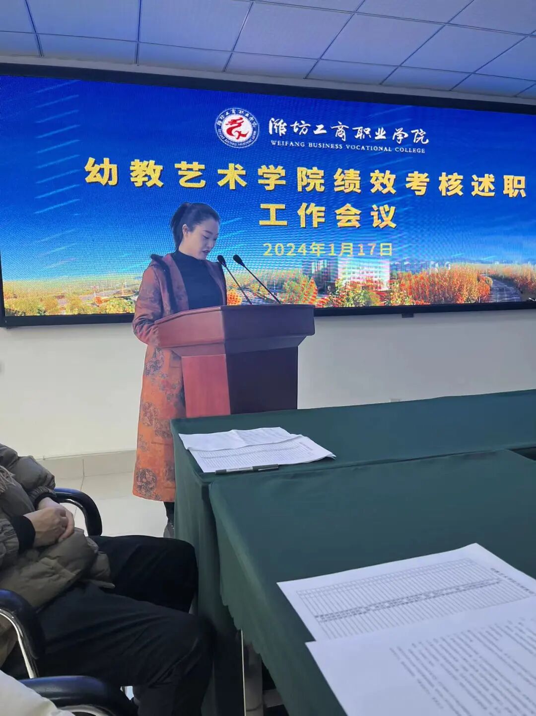 以考核抓落实,以绩效促提升。为深入了解掌握、科学评价我院在2023年度各项工作开展情况,2024年1月17日上午,我院召开幼教艺术学院绩效考核述职会议,参与本次会议的人员有:潍坊工商职业学院张绍秋校长、教务处刘法云老师、人事处刘斌老师还有幼教艺术学院全体教职工老师。