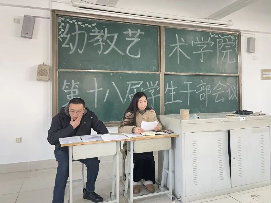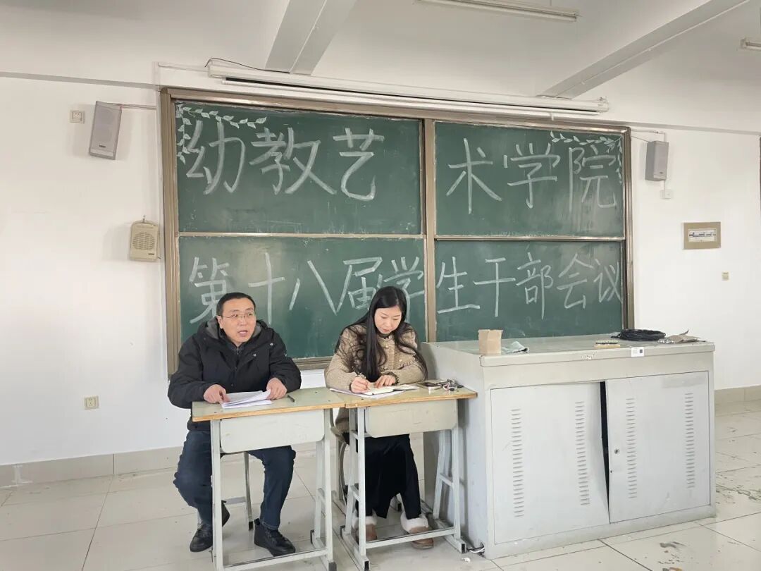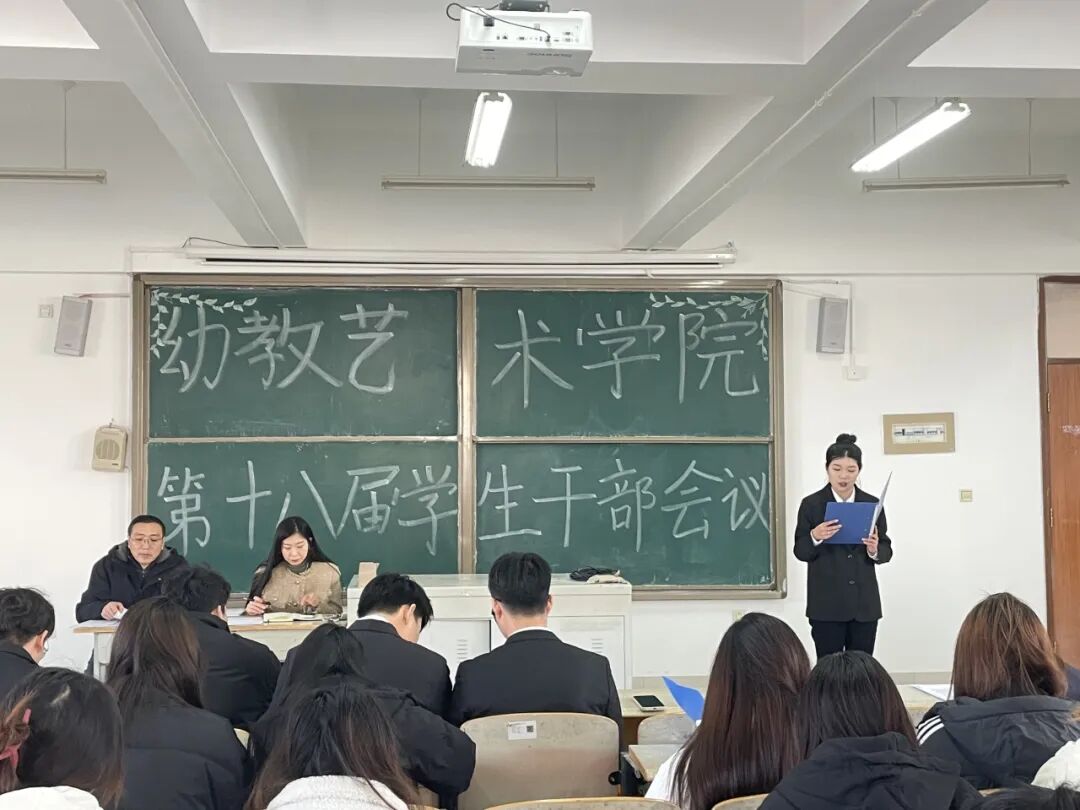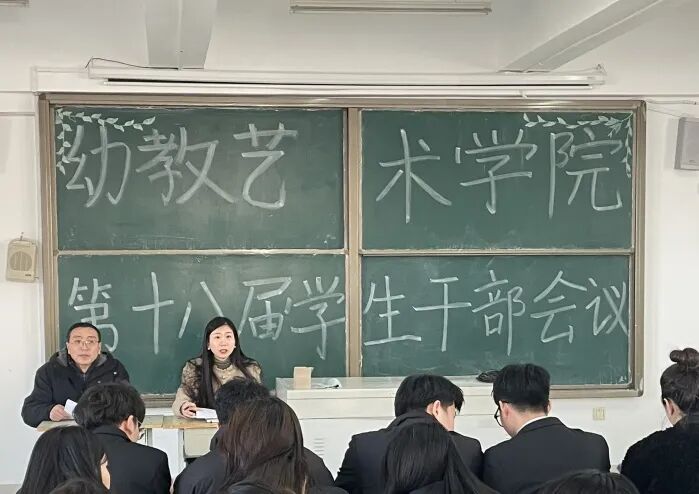 为了回顾和总结过去一学期的工作成果,加强学生会各部门之间的交流与合作。2024年1月5日下午我院在323合堂召开了全体学生干部会议,出席本次会议的有幼教艺术学院党支部书记杨倩倩、党支部副书记苏茂刚以及幼教艺术学院学生会全体学生干部。