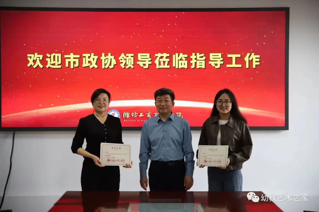 10月30日上午市政协党组成员管常青、市音乐家协会主席李玉蕾一行来到学校对我校参与第十三届东坡文化节超然台晚会的师生表示感谢并颁发证书。潍坊工商职业学院校长张绍秋、执行校长郑志松、幼教艺术学院院长冯玉香等参与了座谈会,座谈会上政协领导对我校师生的专业水平和奉献精神给予充分的肯定,同时也对我校领导表达谢意,感谢我校领导给予本次晚会的大力支持。