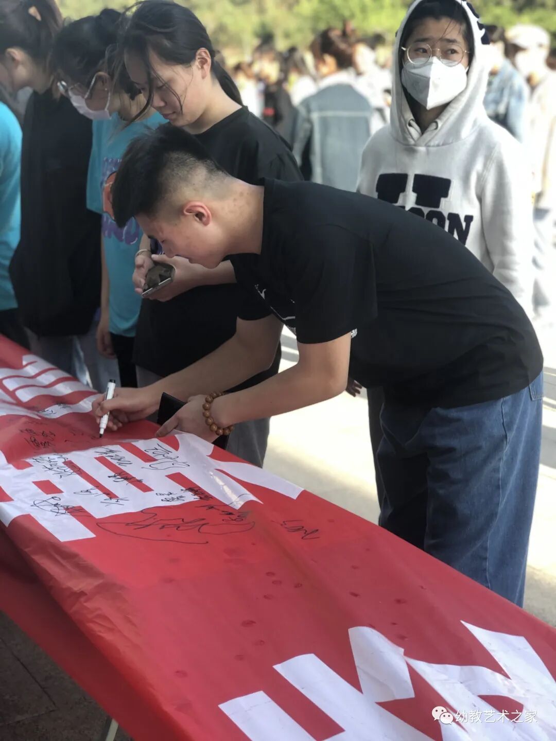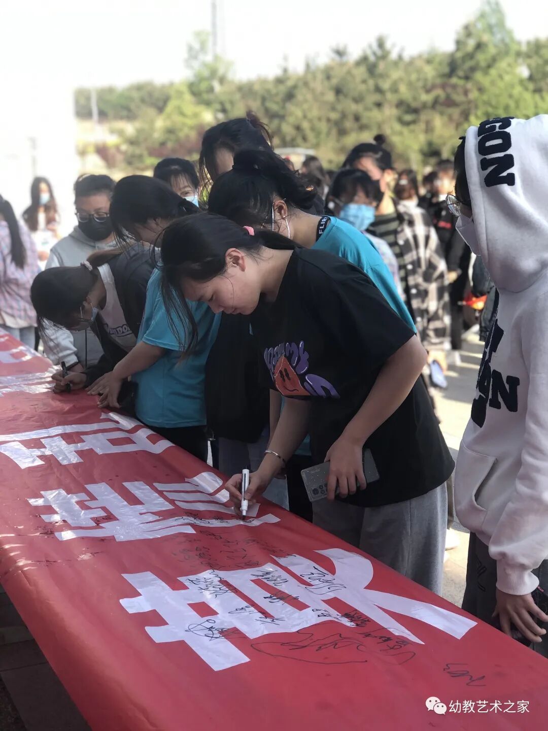 为进一步加强学生法制观念,提高明辨是非能力,杜绝校园欺凌事件发生,构建平安和谐校园。2022年5月5日下午4点,幼教艺术学院在尚智楼楼下举行防校园欺凌签字活动。