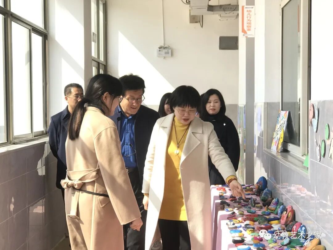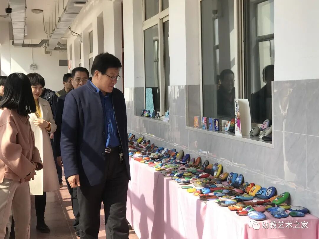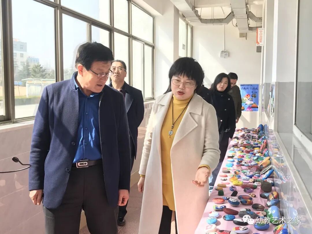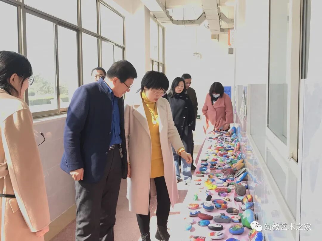 视察途中,滕主任和鞠主任一行被我院学生创作的石头画艺术作品所吸引,他们驻足观看,表示对学生作品的欣赏及赞美。