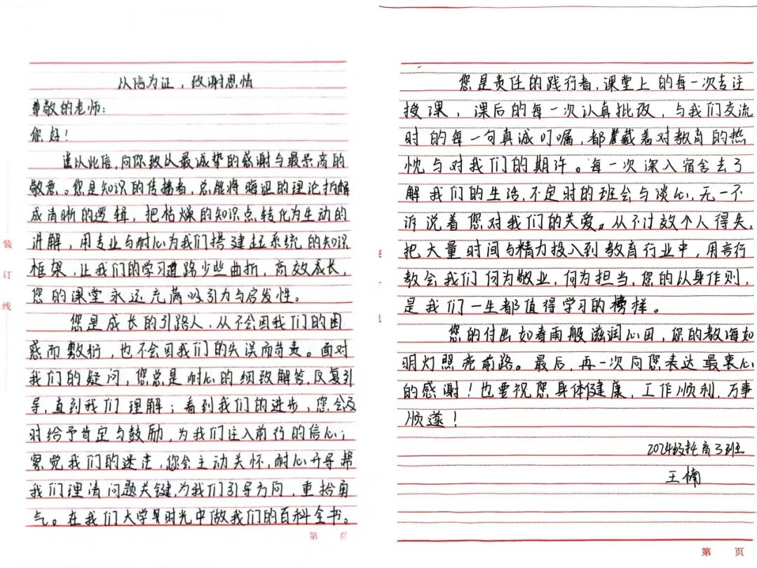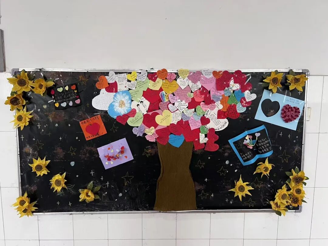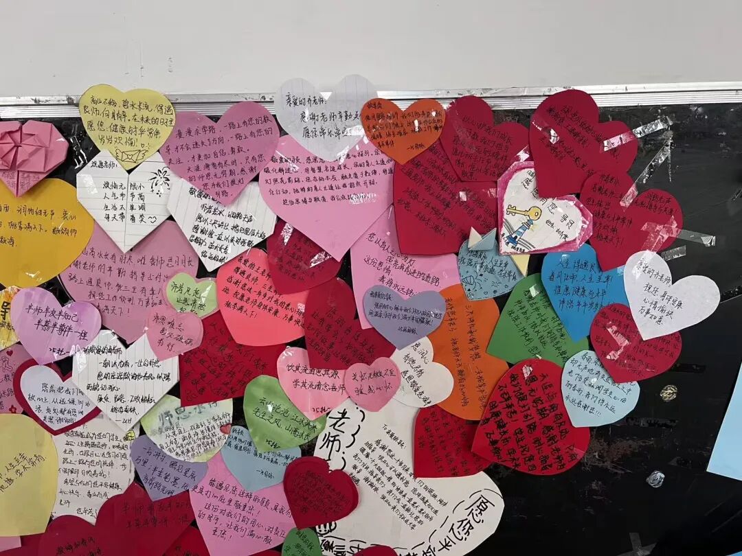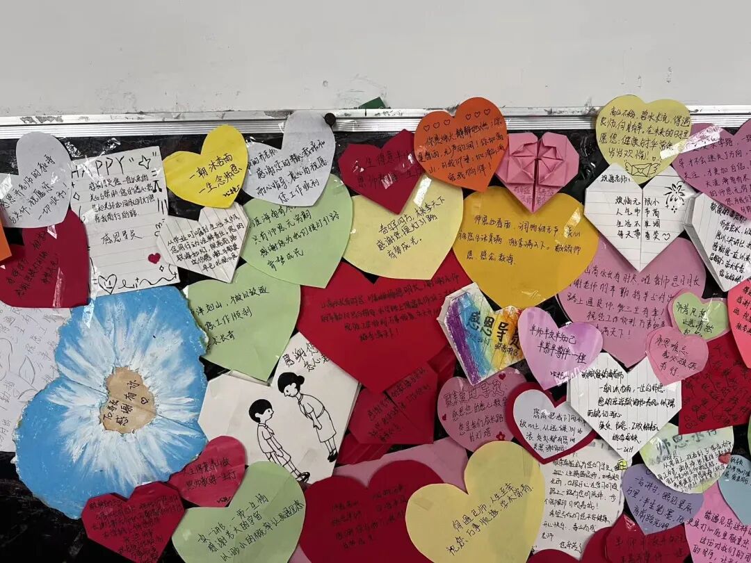 学院教学楼前的宣传栏被打造成了充满温度的“班主任节爱心墙”。这里没有华丽的装饰,却贴满了同学们亲手书写的卡片与画作——有的用稚嫩的笔触画出班主任课后辅导的场景,有的在便签纸上写下“谢谢您总能发现我的小进步”“您的鼓励是我成长的光”等暖心话语,还有的将对班主任的祝福折成纸鹤、星星点缀其间