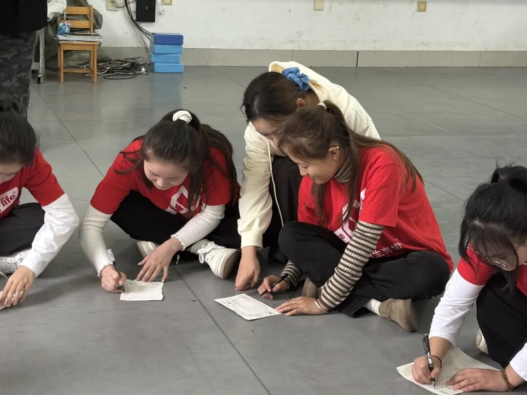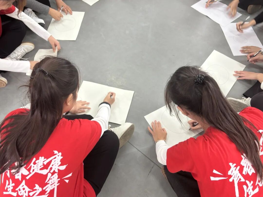 随后学员们围成两个同心圆,在温暖的氛围中认真画出圆圈并绘制肖像。在纸张的依次传递中,每个同学都按照约定写下对同伴的真诚赞美。当纸页回到所属者手中,翻开的瞬间,赞美的力量如同浸了暖阳的溪流,从字里行间漫进心里,一点点挖掘细节里的自我价值。活动以齐声朗读旅行指南收尾,从互动中加深对青春健康理念的了解。