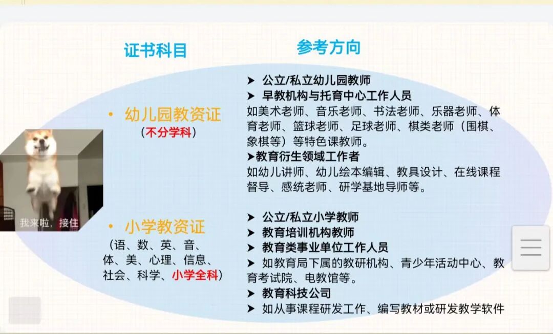 2.小学教师:需对应小学教师资格证,可入职公办/民办小学,教授语文、数学等基础学科,或担任班主任。