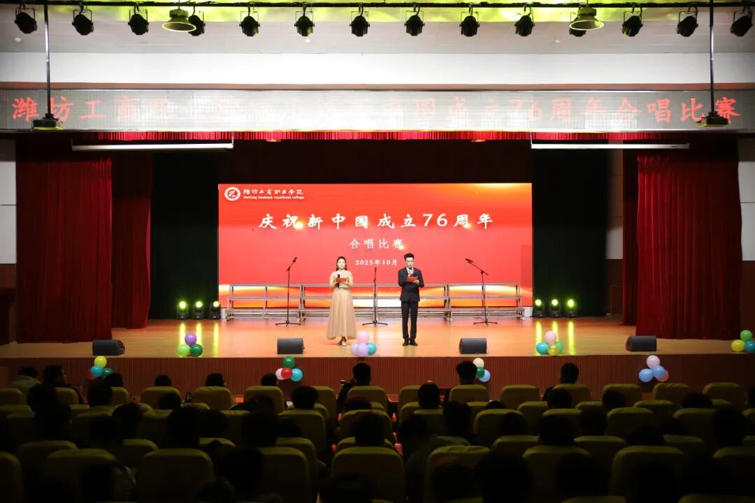 歌声嘹亮忆峥嵘,青春向党铸丰碑。10月30日下午,潍坊工商职业学院 “唱响时代赞歌,共贺祖国华诞”庆祝新中国成立76周年合唱比赛在第一报告厅圆满落幕。幼教艺术学院学子以歌为媒、以声寄情,凭借精湛的演唱与真挚的情怀斩获一等奖,用青春旋律为新中国76周年华诞献上最美礼赞!