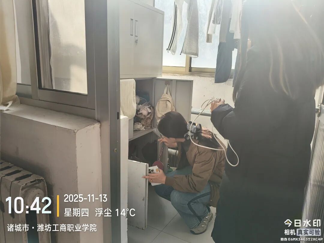 安全隐患排查环节,老师们一行逐一走进各楼栋宿舍,重点查看了宿舍卫生状况、内务整理、用电安全、消防设施配备等情况,仔细排查大功率电器使用、私拉乱接电线、杂物堆积等安全隐患。对宿舍地面清洁度、桌面物品摆放、被褥叠放规范等情况进行细致查看,针对部分宿舍存在的卫生死角、物品杂乱等问题,现场提出整改建议。鼓励同学们养成良好生活习惯,共同维护整洁舒适的“小家”。