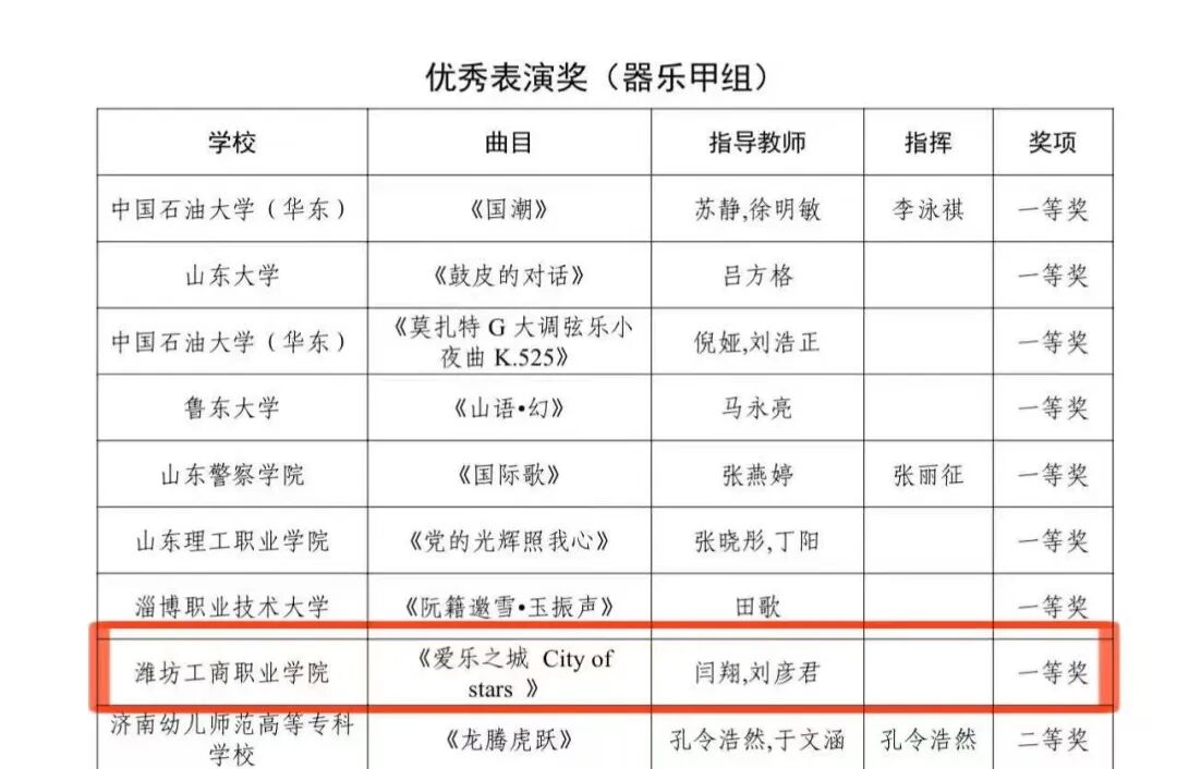近日,2025年山东省大学生校园艺术节器乐舞蹈专项展示活动获奖名单正式公布。本次活动吸引了全省百余所高校的优秀队伍同台竞技,竞争尤为激烈。在学校的高度重视与大力支持下,幼教艺术学院师生凝心聚力、精心筹备,凭借扎实的专业功底与创新的艺术表达脱颖而出,其中器乐作品《爱乐之城·City of Stars》斩获器乐甲组一等奖,舞蹈作品《映山红》荣获舞蹈甲组三等奖。