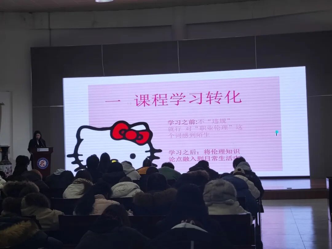 刘天韵同学以《在成长中践行初心,在感悟中创造幸福》为题,分享了自己在成长路上,如何始终以职业伦理为指引坚守初心,以及在践行伦理准则的过程中,收获的专业成长与内心满足,让大家看到了职业伦理带来的温暖与力量。