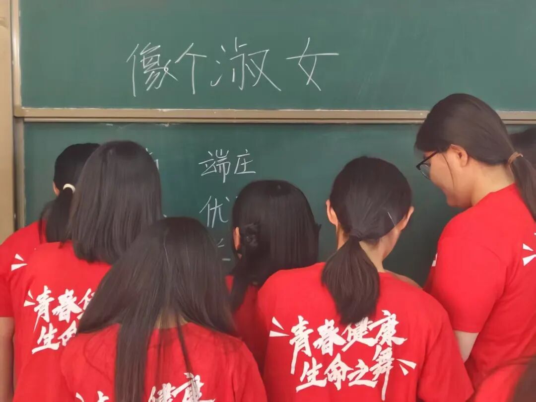 将男女分为两组,男孩组完成“像个淑女”,女孩组完成“做个男人”。面对问题,同学们展开了思考:像个男人或淑女是什么意思?脑海中出现了哪些词语或者期待?