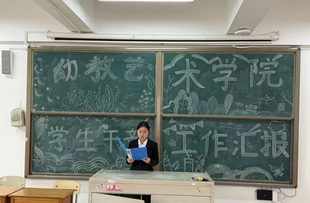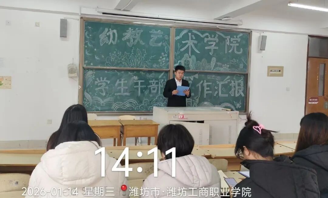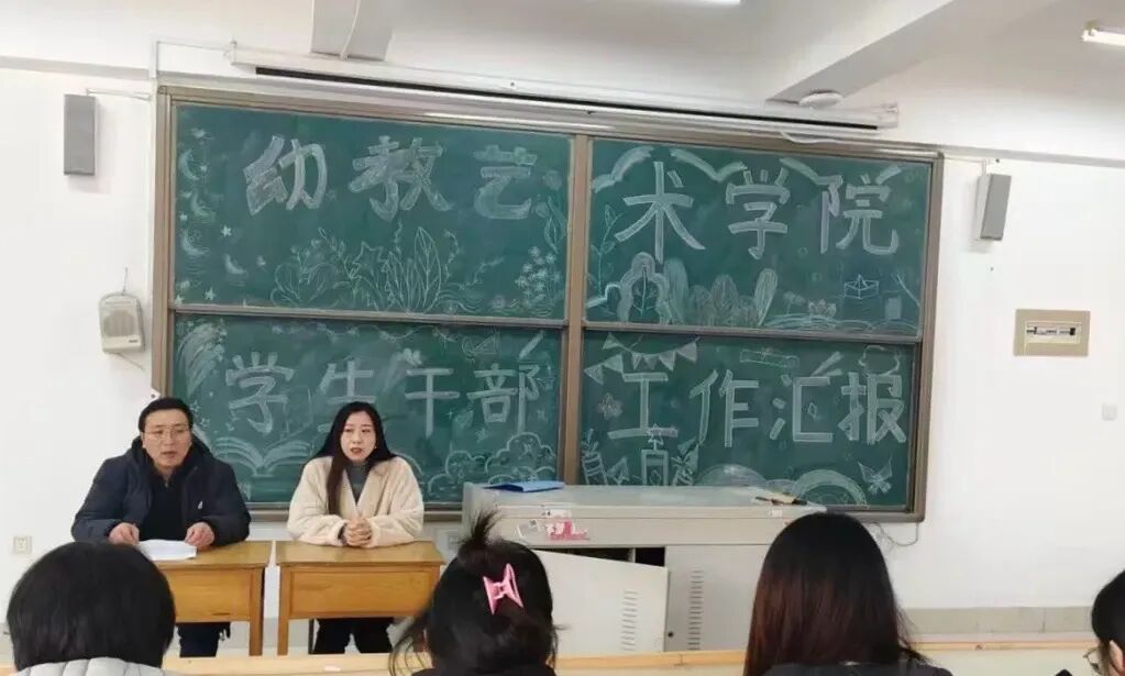 为了回顾和总结过去一学期的工作成果,加强学生会各部门之间的交流与合作。2026年1月14日下午幼教艺术院在223合堂召开了学生干部工作汇报。幼教艺术学院党支部书记杨倩倩、党支部副书记苏茂刚以及幼教艺术学院学生会全体学生干部出席了本次会议。